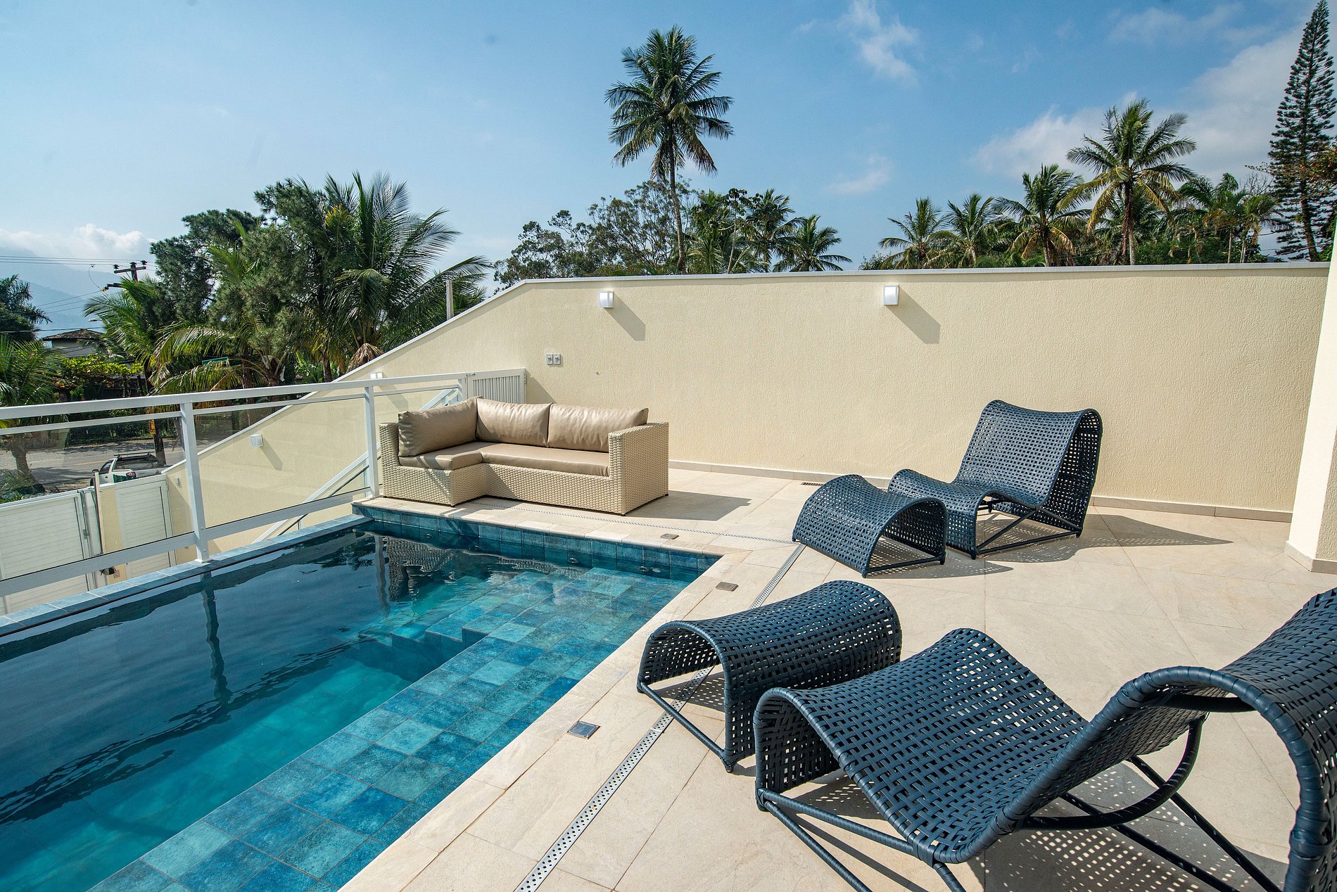 A manutenção e limpeza da piscina são realizadas por nossa equipe de confiança durante a hospedagem, garantindo lazer e conforto.